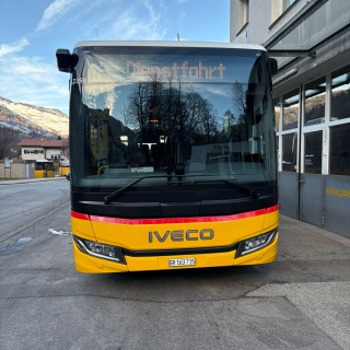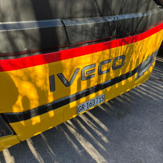 Der Ersatz für unseren Irisbus GR 163715 ist im Einsatz. Speziell am Fahrzeug ist, dass er ein Voith Mildhybrid-Getriebe verbaut hat. Auch der Fahrer-Arbeitsplatz wurde durch Iveco erneuert. Das Fahrzeug fährt sich sehr komfortabel. Äusserlich sieht man, dass er zwei Kamelbuckel besitzt. Diese dienen dem Hybrid-Getriebe. Da die Gemeinde Mountagna da Schons romanisch sprechend ist, wurde das Fahrzeug rätoromanisch beschriftet. Im Einsatz ist er auf allen Wagen-Umläufen, teilweise mit Übernachtung in Juf oder Wergenstein.